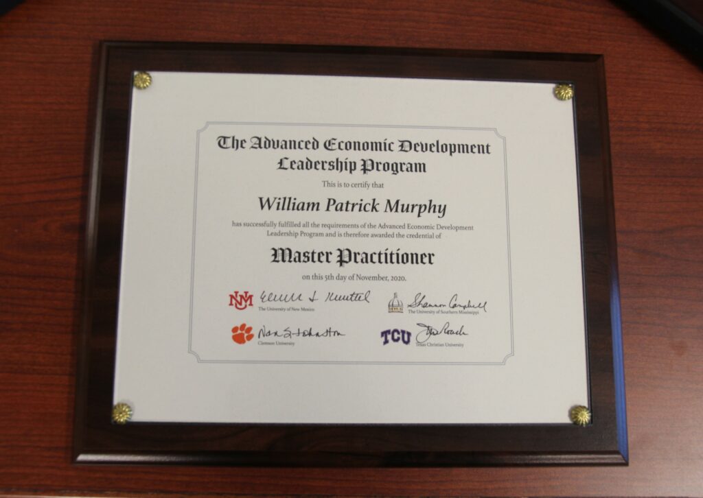 Deputy Secretary of Commerce Bill Murphy designated Economic Development Master Practitioner